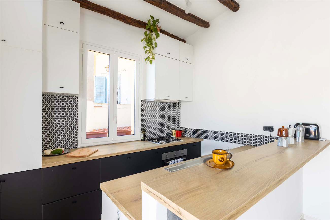 L’obbiettivo di questa casa era di conservare l’anima della casa prendendo in considerazione il suo contesto, il villaggio di pescatore. Per questo sono stati conservati e restaurati i pavimenti originali, di granella di marmo. Alcuni elementi sono stati “Upcycling”, come le porte di legno convertite in mensole.